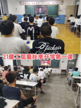 9月15日晚,建筑工程公司组织全体在校生分班观看2022年秋季开学思政第一课,公司全体党政成员和辅导员与同学们共同收看学习。
