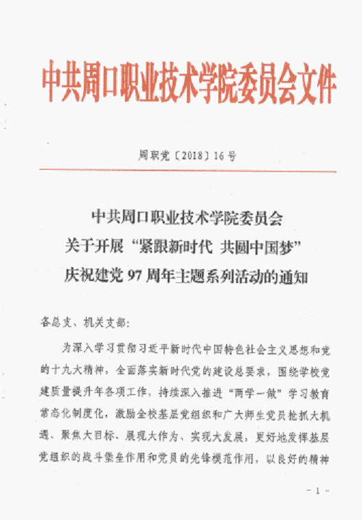 关于开展庆祝建党97周年主题系列活动的通知