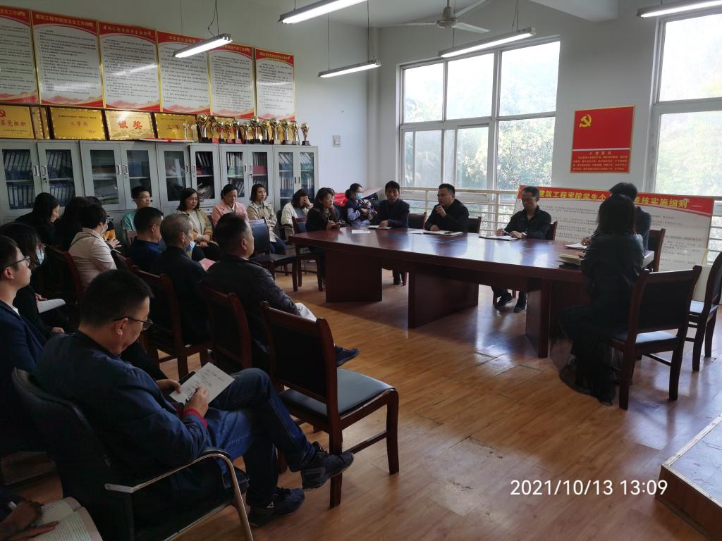 10月13日下午,建筑工程公司召开了全体教师会,传达学习世界杯2026官方网站第一届党代会精神,并对本学期教学工作进行安排布置,强调了教学和值班纪律。会议还讨论安排了其它工作事项。