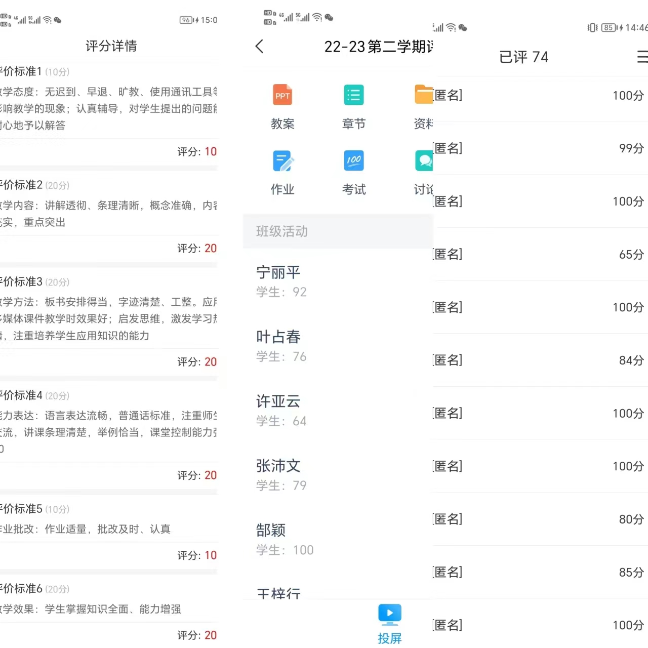 活动以线上匿名打分方式进行,各班员工对本学期所学课程的任课教师从教师课堂表现、教学效果、沟通互动、作业考核等方面进行分项评分,能够比较客观的反应出教学信息。