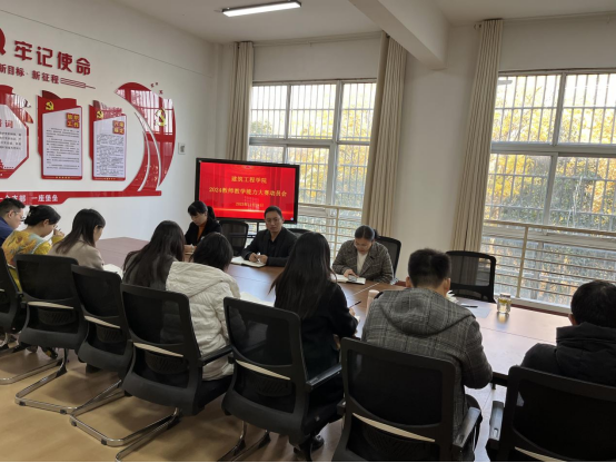 为了贯彻落实公司年度高质量发展指标,抓内涵建设,促进公司教师为参加校级教学能力大赛,2023年11月24日,建筑工程公司在党员活动室召开了2024年教师教学能力动员会。参加会议的有:建筑工程公司党总支书记王晖、经理刘胜杰、副经理宁丽平、教学办主任李涵及拟参赛教师。会议由宁丽平副经理主持。