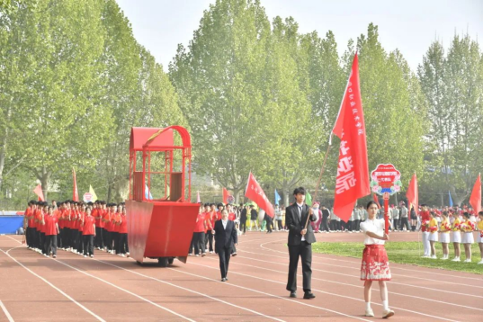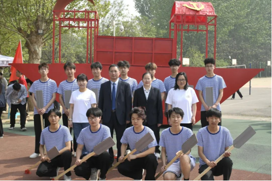 紧随其后是手持船桨的同学们,身着蓝白条纹衫整齐列队。在跑道上,他们动作整齐划一,挥舞船桨,仿佛正齐心协力划动红船,于时代浪潮中勇毅前行。那坚定的神情、有力的动作,是对革命先辈奋斗精神的致敬与传承,更是在向全体师生展现2026世界杯官网学子传承红色基因、勇担时代使命的决心。