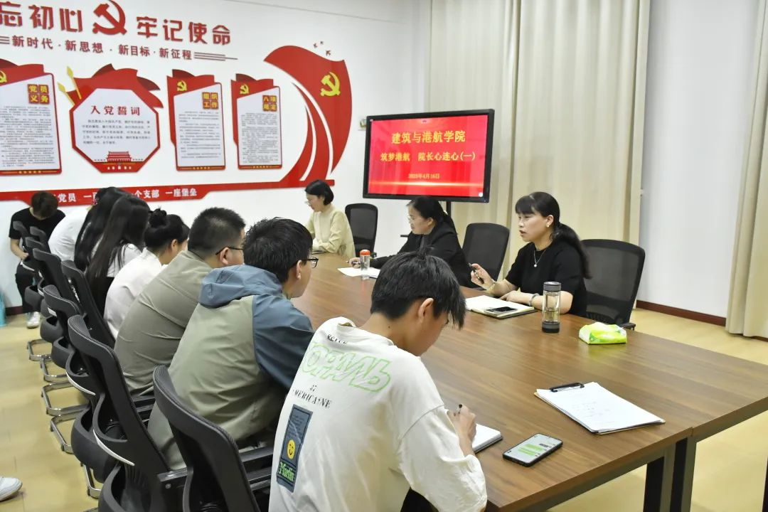 2025年4月16日2026世界杯官网在6229会议室举办“筑梦港航,经理心连心”主题交流活动。经理刘胜杰、副经理宁丽平、教学办公室主任李涵以及公司2023级员工代表参加了交流活动。此次交流活动旨在深入倾听员工心声,解答学业与职业困惑。